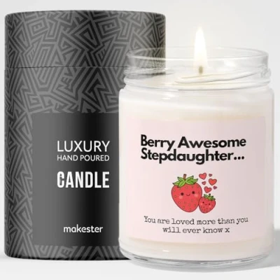 Berry awesome stepdaughter. You are loved more than you will ever know. Quality Over Everything - We've scoured every nook, cranny, and soybean field to get the top-shelf stuff for our candle - the kind of wax and essential oils that would make a candle connoisseur weep with joy. Fresh Fragrance - A captivating aroma made from natural essential oils and a blend of sugared almond, vanilla, and white musk. It's (probably) the best-smelling candle in the world. Great Size, Unforgettable Glow - 220g of high-quality soy wax ensures that this candle will keep on going and going. Enjoy over 40+ hours of uninterrupted candle pleasure.