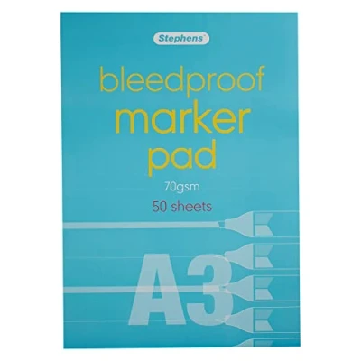 Stephens Bleedproof Marker Pad A3 70gsm 50 Sheets, Ideal For Sketching, Drawing, Doodling, Writing And Colouring, Use With Permanent Markers, Pens, Ink Will Not Bleed Through