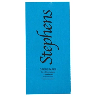 USE Crepe paper is great for making your own paper chains, decorations, origami and flags. It can be shredded to use as decoration tissue in a gift bag, or box, and hampers, for birthday, Christmas, baby shower, wedding, festival, and party CONTENTS The pack includes one 3m x 0.50m sheet of light blue coloured crepe paper.Available in a variety of bright and vibrant colours including white, lemon, yellow, orange, red, pink, blue, green, brown and black CREATIVITY Make your own streamers, outdoor rainbow pride bunting, tinsel, balloon arch for party, or use for decoupage, scrapbooking, decopatch, parcel packing, gift wrap packaging and paper craft art ESSENTIAL Must-have crafters supplies for any stash.Acid-free - safe to use. The 40% stretch makes the crepe paper durable and hard wearing for any craft projects and creations BRAND Comprehensive range offering a wide variety of basic craft, high-quality paper, and stationery products, all at accessible price points. Stephens brings together a wealth of experience and expertise to deliver these essentials