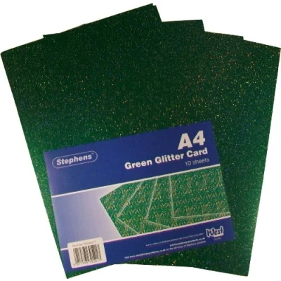 USE Cardstock is Ideal for arts and crafts projects, paper crafting, scrapbook craft, card making, embossing, making a certificate and more. Shiny surface gives a cool, brilliant look to craft creations and can easily be shaped and folded CONTENTS The pack contains 10 sheets of green glitter board mirri cardboard.Also available in red, yellow, green, pink, and blue FEATURES The front of the card is packed with ultra fine, super-sparkly glitter and the back is white. The glitter is densely spread on the card and stays on the sheet IDEAL Rainbow coloured card is great for giving craft and projects a textured level of dimension. Glitter card stock adds sparkly and shiny accents to your makes and creations BRAND Comprehensive range offering a wide variety of basic craft, high-quality paper, and stationery products, all at accessible price points. Stephens brings together a wealth of experience and expertise to deliver these essentials