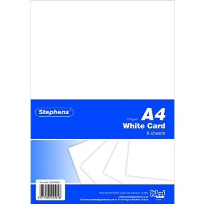 CREATIVITY Great for card making, printing, scrapbook layouts, certificate, copier and printer machine, cut out, layer, embellish, and add a textured look to craft projects for a level of dimension CONTENTS Pack contains 8 white coloured sheets of A4 210gsm high quality cardstock.Add glitter and embellishments to your card for a touch of sparkle and shine IDEAL Can be used for painting, writing, making a poster, postcards, business cards, handmade cards, invitation for birthday, wedding, Christmas cards and more USE White coloured card is suitable for use in the home, office, and school, for general use, art, hobbies and craft. Suitable for some printing and copier machine BRAND Comprehensive range offering a wide variety of basic craft, high-quality paper, and stationery products, all at accessible price points. Stephens brings together a wealth of experience and expertise to deliver these essentials