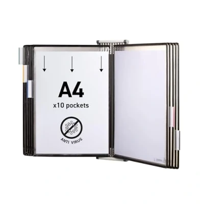 Sterifold Display System Wall mounted Expandable with 10 Anti microbial Pivoting Pockets A4 Ref TAA414507