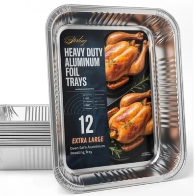 Deep heavy-duty aluminium roasting tray ideal for extra-large Christmas turkeys, beef joints, BBQs and family roasting – rigid, leak-resistant design. Made from high-density aluminium foil that maintains structure under heavy food weight, ideal for large turkeys and festive roasting. Great for large turkeys, beef joints, BBQ platters, vegetable roasting, festive meals and family cooking – ideal for oven and catering use. Convenient single-use trays reduce kitchen mess and simplify cleanup after roasting large turkeys, BBQs and family meals. Deep trays stack securely for tidy storage and efficient use of space, ideal for seasonal roasting, BBQs and large family meals.