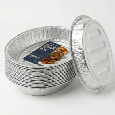 Deep oval aluminium roasting tray perfect for turkey, beef joints, BBQ and Christmas roasting – strong, rigid and oven safe. High-strength aluminium foil provides lasting rigidity for oval roasting, ensuring stability for turkey, roasts and catering food prep. Perfect for roasting turkey, lamb, beef, vegetables, baking casseroles, BBQ cooking and festive meals – ideal for oven and catering use. Easy-clean oval design allows fast disposal after roasting, baking or BBQ cooking, ideal for busy families and caterers. Oval trays stack neatly for compact storage, making them ideal for home kitchens, catering services and festive celebrations.