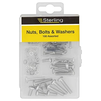 100 Assorted Nuts, Bolts & Washers 3mm 4mm 5mm Sizes Reusable Storage Box Handy Home Hardware Pack, Manufacturer: Sterling