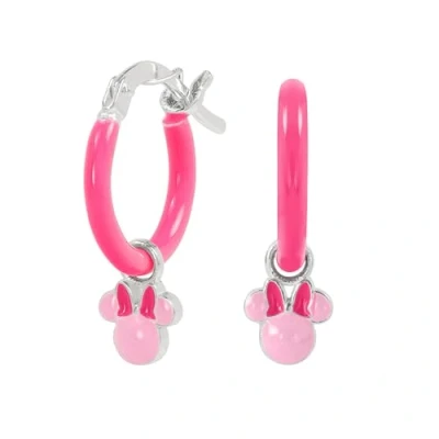 Sterling Silver 925 Minnie Mouse Pink Enamel Huggie Earrings