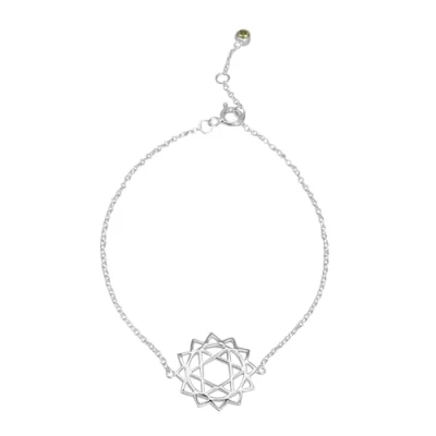 SilverlyFind balance and harmony with our Sterling Silver Cut-Out Heart Chakra Chain Bracelet. Resembling the sun, the delicate cut-out chakra motif will add meaning and elegance to your ensemble.. Cable chain bracelet in 925 sterling silver.. Charm width 17 mm. Chain 1 mm. Length 18 cm. Weight 1.9 grams.. This solid 925 silver bracelet would make a stunning luxury friendship bracelet.. 100% genuine sterling silver containing 92.5% by weight of silver - this jewellery is both hypoallergenic and nickel free.