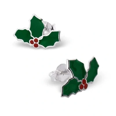 Sterling Silver & Enamel Holly Leaves Stud Earrings