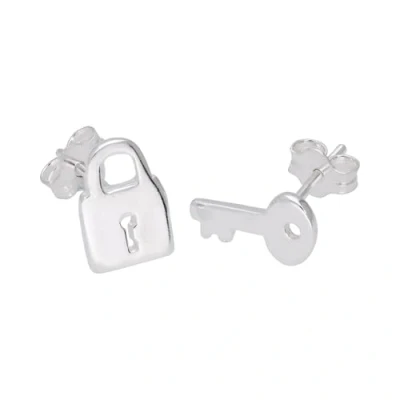 Sterling Silver Key Padlock Stud Earrings