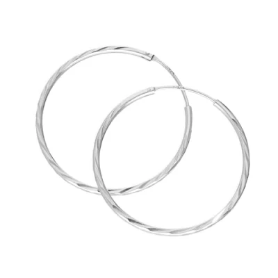 Lightweight design at just 1.7g per pair ensures comfortable all-day wear without compromising style 30mm diameter and 2mm thickness create a balanced, elegant hoop perfect for everyday and special occasions Diamond cut finish adds subtle shimmer and texture, enhancing the classic sterling silver shine Made from 925 sterling silver, offering durable quality and a timeless look that complements any outfit Packaged in a sleek JewelleryBox envelope, ideal for gifting or convenient storage without bulk
