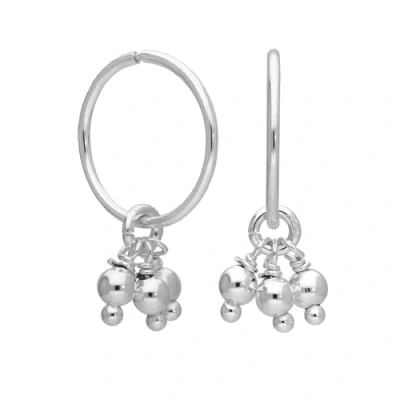 Sterling Silver Triple Ball Bead Charm Hoop 12mm Earrings