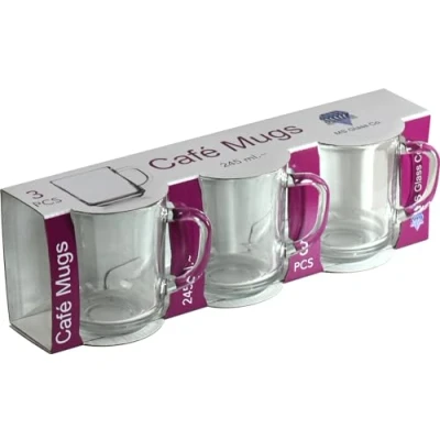 Sterling Ventures Stackable Coffee Mug Cup Glasses with Handle 245ml 3Pk