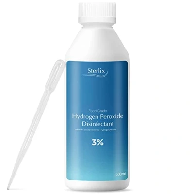 Sterlix Hydrogen Peroxide 500ml Food Grade 3%, Purest Solution Bottle, Additive Free Ideal Bleach Cleaner, Whitener, Mould Remover, Disinfectant, Home Sanitiser 10 Vols