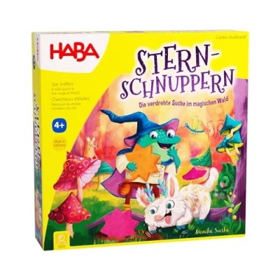 EXCITING COLLECTIBLE GAME - The HABA Shooting Star is a colourful game for ages 4 and up, where it's about testing as many stars as possible in the forest floor with the fun forest animal. FANTASTIC PLAY CONSTRUCTION The game includes a game plan with rotating mechanism, simple rulers and cute wooden game figures for a fun play experience. 2 game variants - The game offers two variants for beginners and advanced players, making it suitable for 2-4 children. The playing time is about 15 minutes. Material: the sturdy game box contains sturdy cardboard game material and wooden figures. Set includes 48 colorful wooden stars in different colors. Made in Germany: The HABA shooting star is made in Germany and playfully promotes colour recognition and counting on small noses., Manufacturer: HABA Sales GmbH & Co. KG