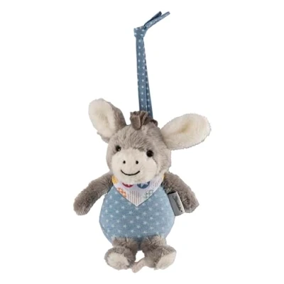 Faithful companion for cuddling and dreaming: cuddly toy donkey Emmi with integrated musical mechanism, suitable for babies from birth Grip and touch options: soft legs, long ears and mane as well as sewn-on neckerchief, for tying in the pram or in the cot Soothing slumber song: La Le Lu, musical mechanism interchangeable - other melodies in the form of a musical mechanism available separately and can be used independently Easy to clean and care: washable at 40°C, remove the toy before washing, unlocking the child-safe zip with paper clip Box contents: 1 x Sterntaler music box, soft toy donkey Emmi, integrated musical mechanism, size: S, material: fleece made from 100% polyester, jersey made from 100% cotton, light blue/grey, Manufacturer: Sterntaler
