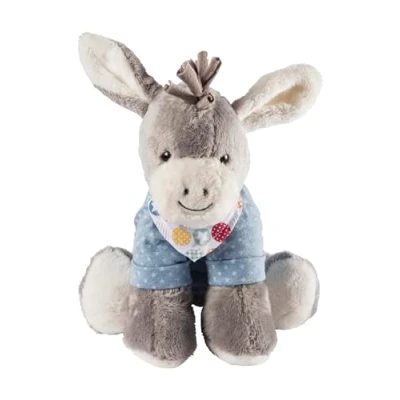 Faithful companion for cuddling and dreaming: cuddly toy donkey Emmi with integrated musical mechanism, suitable for babies from birth Grip and touch options: soft legs, long ears, tail and mane as well as sewn-in T-shirt and neckerchief Soothing slumber song: La Le Lu, musical mechanism interchangeable - other melodies in the form of a musical mechanism available separately and can be used independently Easy to clean and care: washable at 40°C, remove the toy before washing, unlocking the child-safe zip with paper clip Box contents: 1 x Sterntaler music box, soft toy donkey Emmi, interchangeable musical mechanism, size: L, material: fleece made of 100% polyester, jersey made of 100% cotton, light blue/grey, Manufacturer: Sterntaler