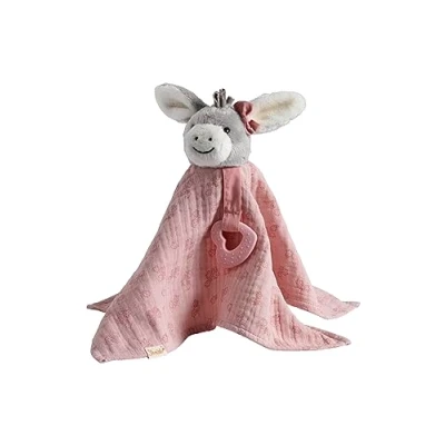 Cuddle cloth for girls made of soft, floral muslin with donkey head and heart-shaped silicone teething ring and rattle Practical is the heart-shaped gripping ring with the finely textured surface, which can support the baby as a teething aid High-quality workmanship in the usual Sterntaler quality – the cuddly blanket for girls has cute details, button eyes and a small rattle in the head Gift idea for birth, baby shower party, birthday or christening Easy to clean at 40 °C in the washing machine