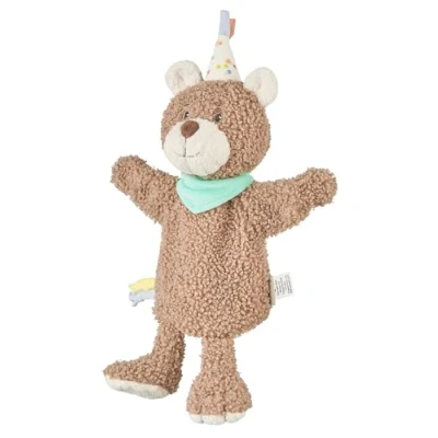 Sterntaler Kids Hand Puppet Bear BO Baby Toy Soft Fluffy Padded Polyester Wadding Cute Bandana Party Hat 30x21x8cm Light Brown