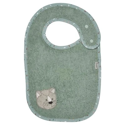 Baby bib made of high-quality and absorbent cotton in stone green with appliqué cat Lilly and practical press stud on the shoulder for easy putting on and taking off. Classic and proven shape of the bib to protect baby clothes in child-friendly design for boys and girls. Practical helper for baby and toddler at every meal, also helpful as a burp cloth. Essential in the basic equipment for the offspring. Handy format – ideal for storing in a changing bag or handbag on the go. Gift idea for many occasions and beautiful to complement with children's tableware and other products for care and equipment of the cat Lilly series. High-quality workmanship in the usual Sterntaler quality with attractive design. Keeps its shape even after many washes at 60°C in the washing machine and tumble dryer. STERNTALER - At Sterntaler we develop products with loving designs for children that stimulate new fantasy worlds. Discover our large range for babies and toddlers.