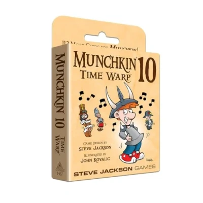 Adds 112 brand-new, zany cards to the classic Munchkin set, immersing players in a comically warped version of history. Arm yourself with historic relics like George Washington’s False Teeth and the Philosopher's Stone, then square off against foes like Cleopatra and Mrs. O’Leary’s Cow! Created by the TIME-honored duo Steve Jackson and John Kovalic, Munchkin 10 – Time Warp delivers the trademark blend of satire, strategy, and laughter. Seamlessly integrates with other Munchkin expansions, allowing players to mix, match, and shake up their games for endless replayability. This expansion guarantees laughs and excitement for new players and seasoned Munchkin fans alike., Manufacturer: Steve Jackson Games