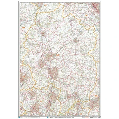 A High Quality Postcode Sector Wall Map. Showing the Entire SG Postcode Area, with Precise Boundaries and Clear Postcode Labels on a Detailed Map Background. A0 Size - 1189mm x 841mm Plastic Coated waterproof / wipeable