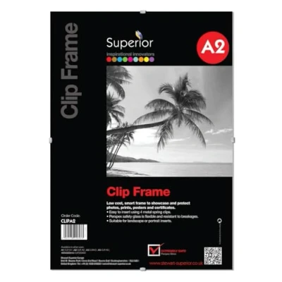 Smart and easy way to showcase and protect photos, prints, posters and certificates Easy to insert, using 4 metal spring clips Perspex safety glass is flexible and resistant to breakages Landscape or Portrait format Size A2 Smart and easy way to showcase and protect photos, prints, posters and certificates Easy to insert, using 4 metal spring clips Perspex safety glass is flexible and resistant to breakages Landscape or Portrait format Size A2