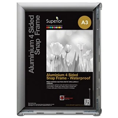 Stewart Superior A3 Waterproof Aluminium 4 Sided 25mm Front Loading Picture/Poster Snap Frame Silver