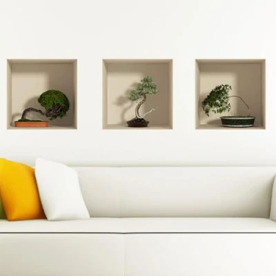Sticker 3D Effect Wall Decal Bonsai Paper Decoration Optical Illusion Room and Living 30 x 90 cm