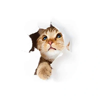 Sticker 3D Effect Wall Decal Kitty Paper Decoration Optical Illusion Room and Kitchen 25 x 20 cm