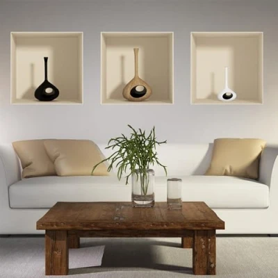 Sticker 3D effect Wall decal Round Vases paper decoration optical illusion room and living 30 x 90 cm