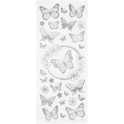 Stickers butterflies, sheet 10x24 cm, approx. 28 pc, silver, 1sheet
