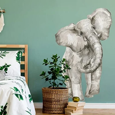 Stickerscape Elephant Wall Stickers (Watercolour Large) Safari Jungle for a Children's Bedroom or Nursery Easy to Apply and Cleanly Removable