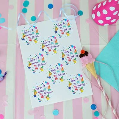 π· Peppa Pig Party Bag Labels - Our Peppa Pig and friends birthday label pack is perfect for adding that finishing touch to a Peppa Pig themed party. This pack contains 8 Peppa and friends themed white circle labels. 4 labels will have the text βParty with Peppa!β, 4 labels include βTime to Party!β. π Size - Each label measures 8cm x 8cm. βοΈ Suitable for - These labels are great for sealing party bags and favours. πΆ Child Friendly - We use only water based, child friendly, inks during the print process. This ensures all our wall stickers and decals are child friendly with no nasty fumes when you remove your wall stickers from the packaging. π Made in the UK - All our wall stickers and decals are made in-house, by us, in the UK. This ensures we have full control over the quality of our product and also allows us to quickly rectify any issues that may occur.