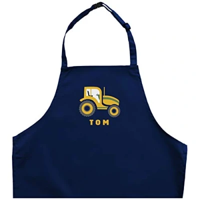 Stickerscape Personalised Tractor Apron (Child) To Keep Your Little Baker Clean Matching Adult Sizes Also Available 5 Colours Adjustable Fit With Safety Release (Navy, Junior)