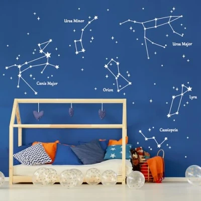 Stickerscape Star Wall Sticker (White Constellations Large) Decals, Space Stickers for Walls, Decor Easy to Apply, Cleanly Removable