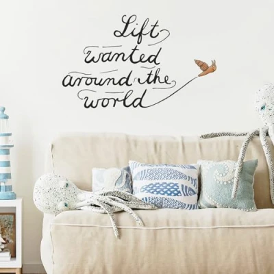 🐳 The Snail and the Whale Wall Sticker - Our range of Gruffalo and Friends wall stickers are the perfect addition to a nursery, bedroom or playroom. This pack features the text ‘Lift wanted around the world’ with Lift. 📏 Size - This sticker comes in 2 size options; Regular and Large. The regular size measures approximately 42cm x 26cm, the large measures approximately 63cm x 39cm. ✔️ Easy to Apply - All our wall stickers come with full application instructions, with further links to video application guides. To ensure easy, stress-free application, our wall stickers come with transfer film making it quick and easy to apply even large, intricate decals to the wall. All our wall stickers are suitable for matt painted walls. 👶 Child Friendly - We use only water based, child friendly, inks during the print process. This ensures all our wall stickers and decals are child friendly with no nasty fumes when you remove your wall stickers from the packaging. 💂 Made in the UK - All our wall stickers and decals are made in-house, by us, in the UK. This ensures we have full control over the quality of our product and also allows us to quickly rectify any issues that may occur.