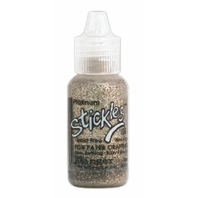 Stickles Glitter Glues Platinum Stickles Glitter Glue. Easily write dot dash draw and embellish. Available in .5 oz. fine point applicator tip bottles. Acid free Non-toxic Non-settling Easy-flow tip Water wash-off. STK-PLAT SGG09696 MPN