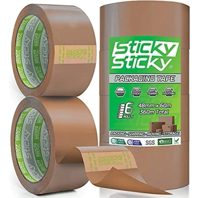 Durable Brown Tape: Our brown packaging tape is a robust 45 microns thick, ensuring it withstands wear and tear for long-lasting use, providing reliable and secure packaging. Weather-Resistant Adhesive: The UV- and moisture-resistant adhesive delivers a strong hold and seal, making it ideal for packages exposed to various weather conditions during transit. Extreme Temperature Endurance: Withstands temperatures ranging from -23° C to 93° C without peeling or cracking, ensuring your packages remain securely sealed regardless of the environmental extremes they may encounter. Non-Yellowing Formula: Our acrylic-based packing tape won't yellow over time, making it perfect for long-term storage. Your packages will maintain a clean and professional appearance even after extended periods. Great Value Pack: Each set includes 6 high-quality rolls, each measuring 48 mm x 60m. With this pack, you get ample tape for multiple shipments, making it a cost-effective and convenient choice for your packaging needs.