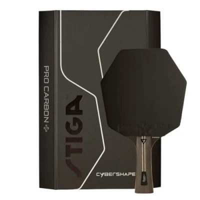 Elevate your table tennis performance with the STIGA Pro Carbon+ Cybershape 5-star bat, engineered for advanced players seeking unparalleled speed and precision Revolutionary Cybershape design: Features a unique, hexagonal shape that increases the hitting area, optimizing your performance and getting you closer to the table, a significant advantage for short serves and returns High-quality material combination: this professional bat consists of 5 layers of wood and 2 layers of carbon fibre, which ensures perfect balance, lightness and maximum power Enhanced sweet spot: The innovative design featuring Touch Carbon Technology provides a larger sweet spot, extending further out on the blade for optimal strokes and control ITTF-Approved STAR5 rubber: Equipped with high-quality rubber approved for competitive play, offering exceptional spin and control