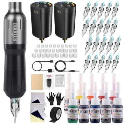 STIGMA Tattoo Kit Wireless Rotary Pen Professional Machine Set with 2Pcs Batteries 20Pcs Cartridges Needles for Beginners and Artists STP7KIT 1