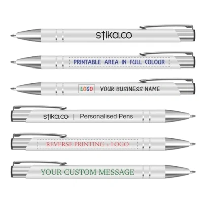 stika.co Pack of 120 Pens Custom Full Colour Printed Metal Personalised with your Logo and/or Text, Promotional Events Schools giveaway Wedding favours