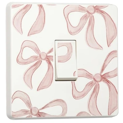 stika.co Pack of 2 Pink Bow Print Single Light Switch Sticker Vinyl Cover Skin