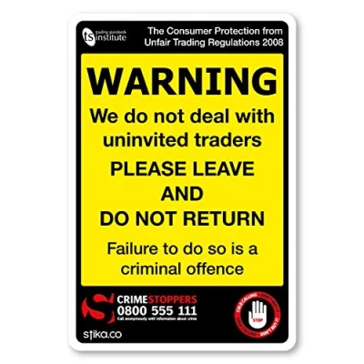 stika.co Trading Standards Cold Calling Uninvited Traders Warning Sticker Self Adhesive Sign for Doors/Windows (Static Cling)