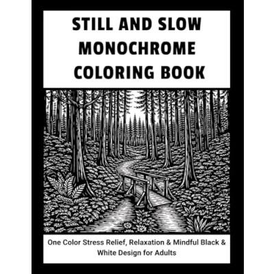 Still and Slow Monochrome Coloring Book: One Color Stress Relief, Relaxation & Mindful Black White Design for Adults