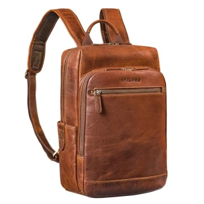 STILORD 'Yuki' Leather Backpack Men Business Vintage Backpacks for 13,3 inch MacBook Laptop Bag Modern Daypack Work Office Genuine Leather, Colour:kara cognac