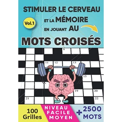 Stimuler le Cerveau et la mémoire en jouant au mots croisés: livre croisés adultes de 100 grilles niveau facile & moyen + 2500 idee cadeau original