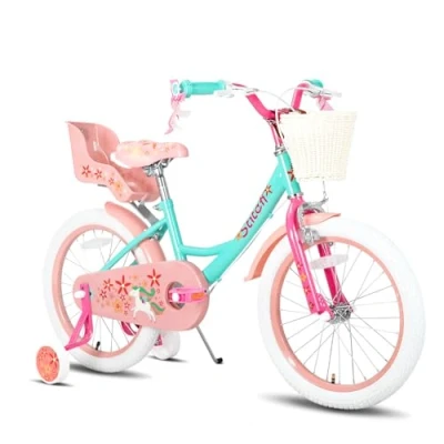 🚴✔take the kids height into consideration: 12 inch bike is suitable for 3-4 years old (33-41 inch) girls; 14 inch bike is suitable for 3-5 years old (35 - 47 inch) girls; 16 inch bike is suitable for 4-7 years old (41 - 53inch) girls18 inch bike is suitable for 5-8 years (45-57 inch) girls. Use our easy-to-follow size chart, you'll find a perfect size for your little beloved. 🚴✔Amazing Design and Color! JOYSTAR Unicorn Princess Girls bike with Bright colors, stylish and charming. beautiful basket and doll bike seat add extra fun to the ride 🚴✔ Complete accessories, this children's bike is equipped with a doll bucket, bike handlebar flutter, basket, for little girls to appeal to a stronger 🚴✔Easy Assembly! 85% of the bike is assembled. The front tire, the seat and training wheels need to be installed. Assembly tools and an easy to follow instructions are included 🚴✔ lease contact us at the first time if you have any problems with assembly or product defects, and we will solve them for you at the first time after confirmation.