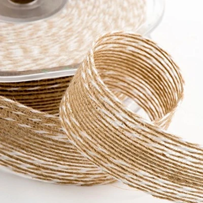 Stitched Natural Hessian Ribbon 25mm x 10M