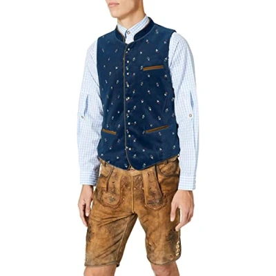 Traditional design – the traditional Calzado vest impresses with a traditional design. The embroidered stand-up collar, the antique silver ball buttons and the cotton velvet offer a timeless charm. Individually adjustable – the adjustable strap on the back allows individual adjustment to your body shape and personal preferences, so you always feel comfortable Versatile – In addition, the vest can be optimally combined with leather trousers, traditional shirts or modern jeans and offers you an excellent choice for any occasion High-quality materials – made from 100% high-quality cotton and a 100% polyester inner lining, the costume vest offers high wearing comfort even during longer wearing times. Tradition and quality: Stockerpoint combines traditional craftsmanship with timeless design. Whether elegant dirndl, blouses, leather trousers or shirts - we are your companion for high-quality traditional fashion
