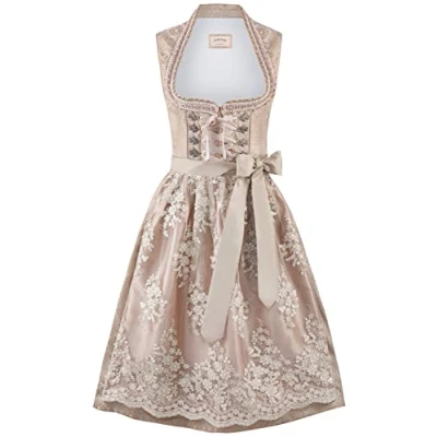 Elegant design – Our Gabrielle women's dirndl combines traditional craftsmanship from Bavaria with stylish and modern accents – ideal for festive occasions and celebrations. Comfortable to wear – made from 100% polyester with jacquard pattern, the dirndl ensures a dimensionally stable, easy-care look and long wearing times. Loving details – the elegant shawl collar and the delicate ruffles on the neckline give the dirndl a feminine touch, while sewn-on decorative borders and sparkling rhinestone bodice hooks set stylish accents. High-quality apron – the additionally included, colour-coordinated and lined lace apron rounds off the dress harmoniously and gives a stylish overall impression. Tradition and quality: Stockerpoint combines traditional craftsmanship with timeless design. Whether elegant dirndl, blouses, leather trousers or shirts - we are your companion for high-quality traditional fashion